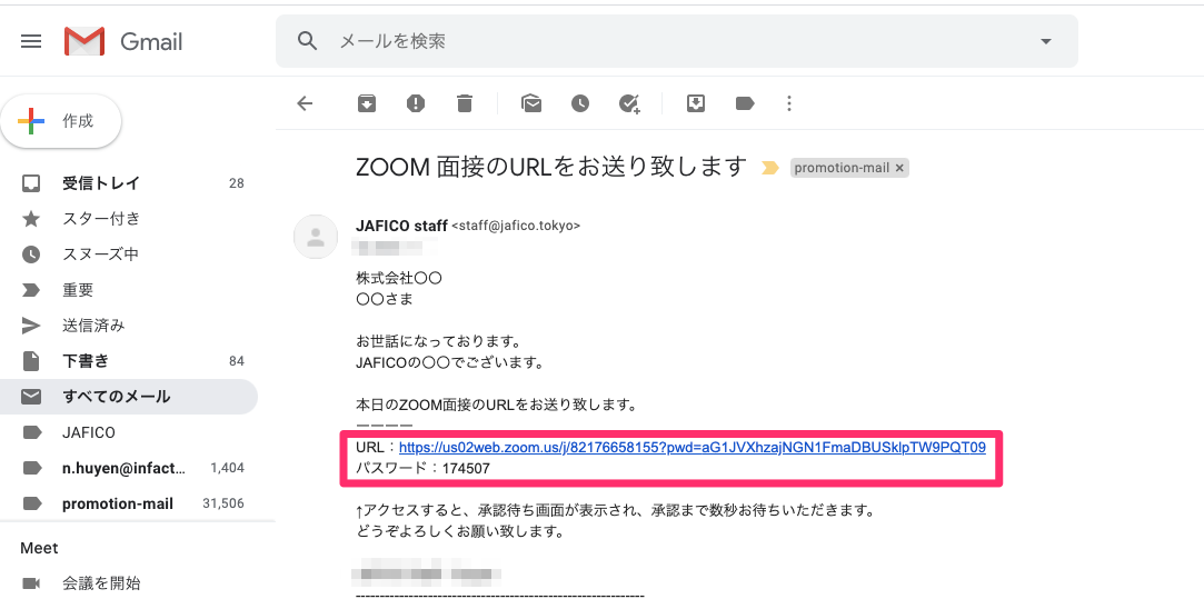 まず最初にJAFICOがZOOMを立ち上げて、招待URLを発行します。メールなどでURLをご提供致します。